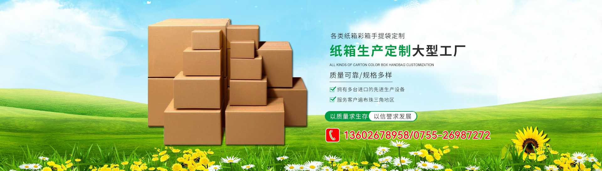 公司具有雄厚的技術力量及強大的生產加工能力。本著“經濟、實用、環保、完美”的經營理念,為客戶設計生產所需的各類紙箱、紙盒、紙卡等包裝,部分產品用做出口產品包裝。送貨范圍覆蓋整個珠江三角地區。