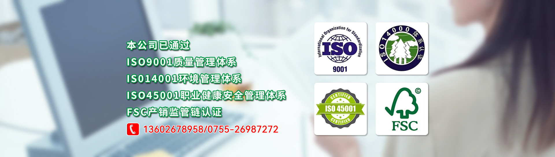 本公司已通過:ISO9001質量管理體系、IS014001環境管理體系、ISO45001職業健康安全管理體系、FSC產銷監管鏈認證!
